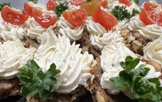 Käse-Weintrauben-Spieße 2,20€/Stück Gyrosbällchen mit Tzatziki im Glas 2,90€/Stück Hähnchenspieße 3,40€/Stück vegetarische Blätterteigschnecken 2,20€/Stück Lachsröllchen 2,90€/Stück Antipasti im Glas 3,90€/Stück Garnele auf Rote-Beete-Taler mit Limettenschmand 4,-€/Stück Garnelencocktail,im Glas 3,50€/Stück marinierte Garnele an Aioli 3,50€/Stück kleine Melonenschiffchen mit rohen Schinken 2,-€/Stück Partyschnitzel,kalt 3,90€/Stück Partyfrikadelle,kalt 2,50€/Stück Linsensalat mit Datteln im Speckmantel,im Glas 2,90€/Stück 1/2 belegtes Brötchen,verschieden belegt 1,90€/Stück Schnittchen,verschieden belegt 1,60€/Stück Canapees,verschieden belegt 3,70€/Stück |